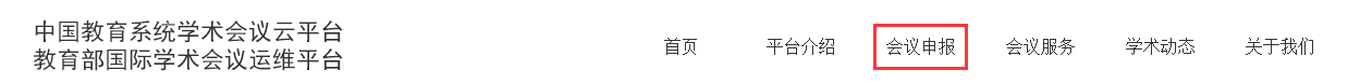 进入中国教育系统学术会议云平台,点击“会议申报”——“进入会议申报系统”。