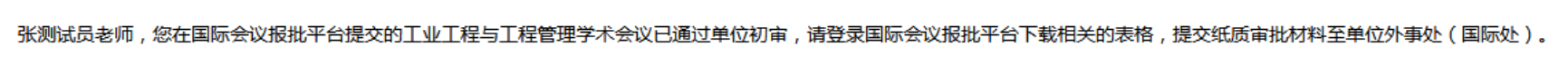 教育部审核通过后,报批状态显示“会议审核通过”。国际处将会依此提供会议批复函。
