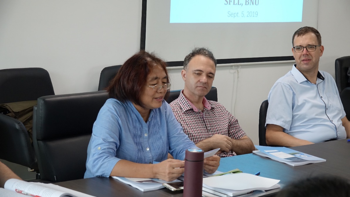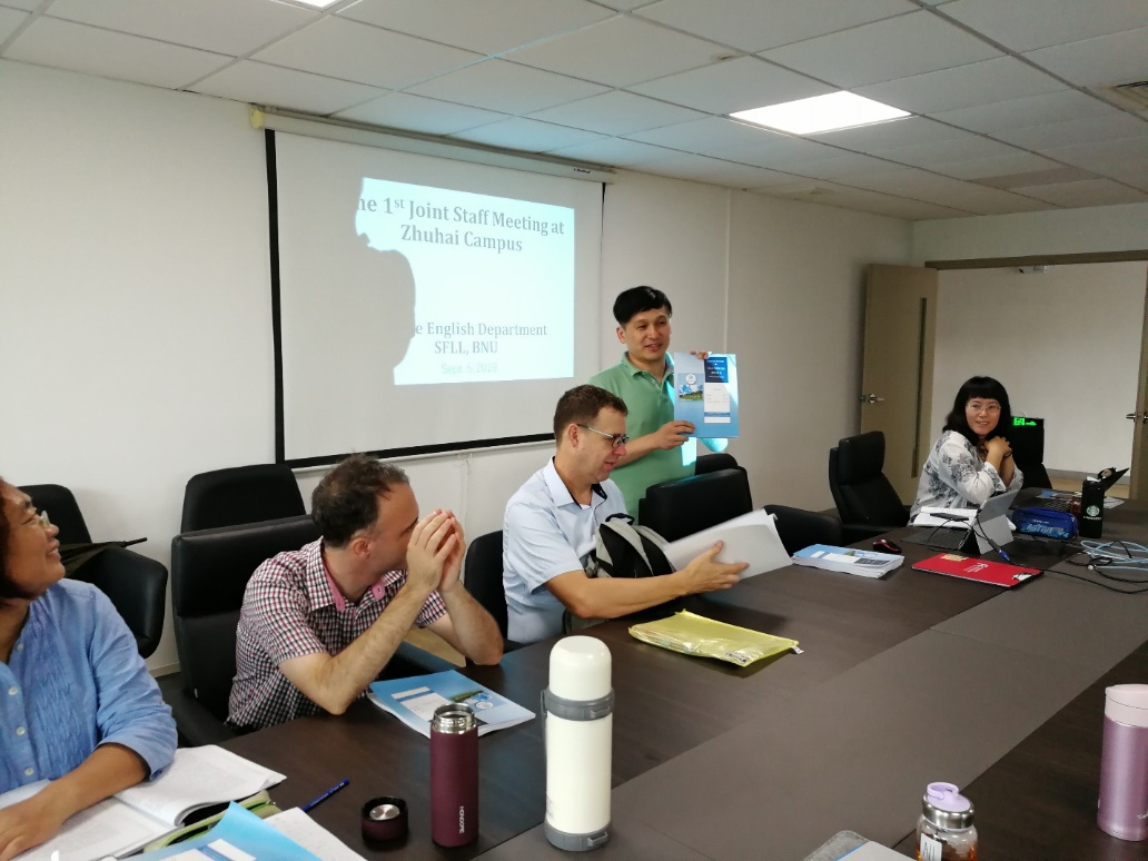 2019年9月5日,未来教育学院大学英语课程任课教师首次集体备课会,在珠海校区励教楼VB218会议室召开。全体中外任课教师共17人参加集体备课,北京师范大学外国语言文学学院副院长郭乙瑶教授、公外部主任林敦来老师全程参加研讨活动。