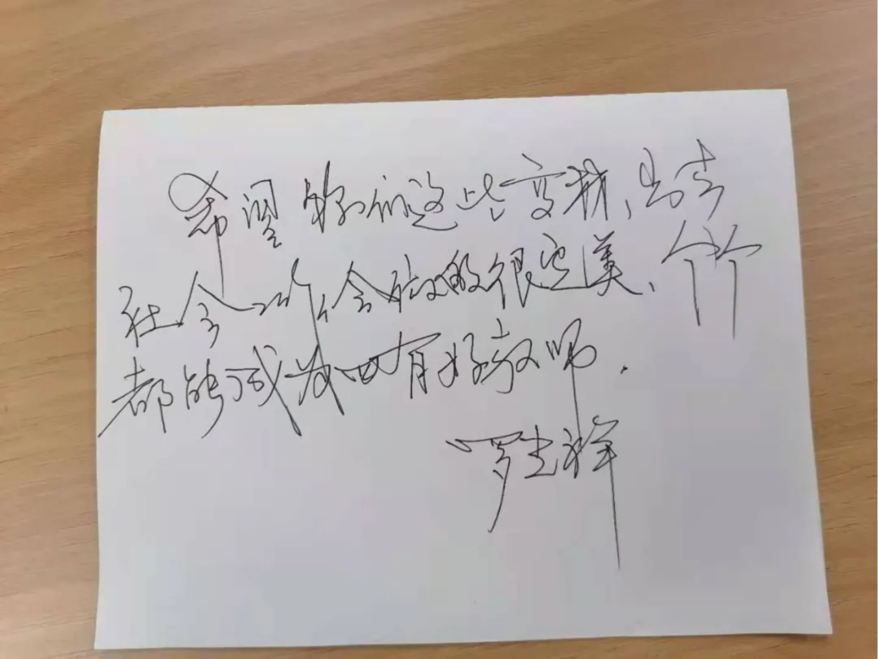座谈会后,罗老师亲笔写下对乐育书院全体学生的祝愿: