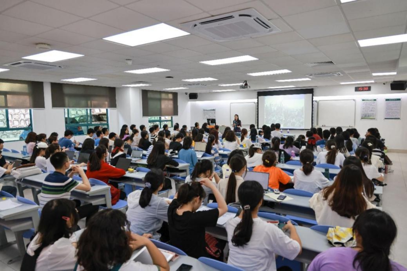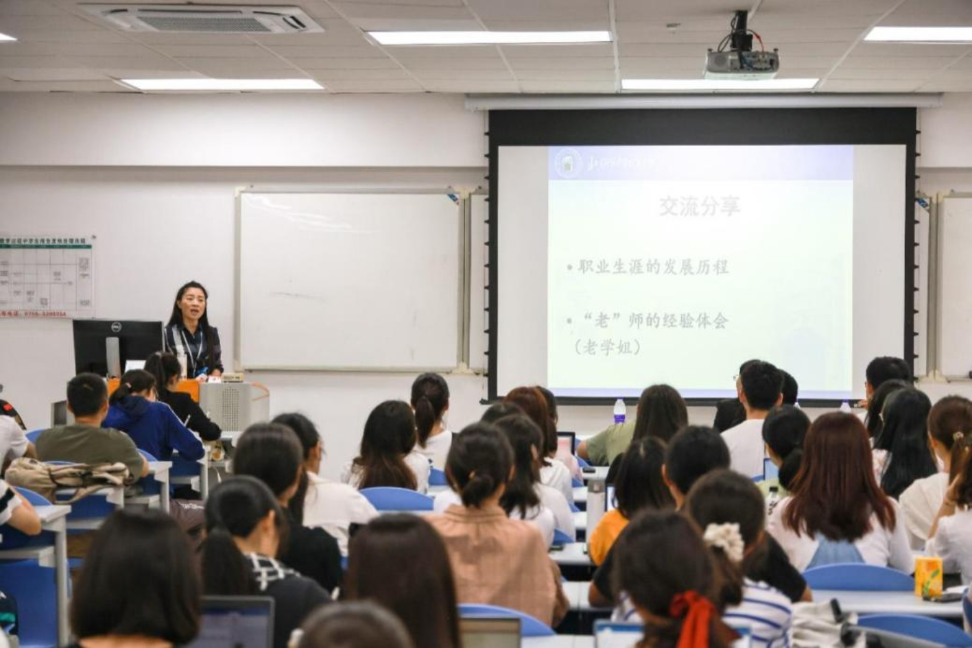 讲座最后,老师以“径须清楚你的山!回肠荡气飞去还!”勉励大家,给予珠海校区的学生衷心的祝愿。