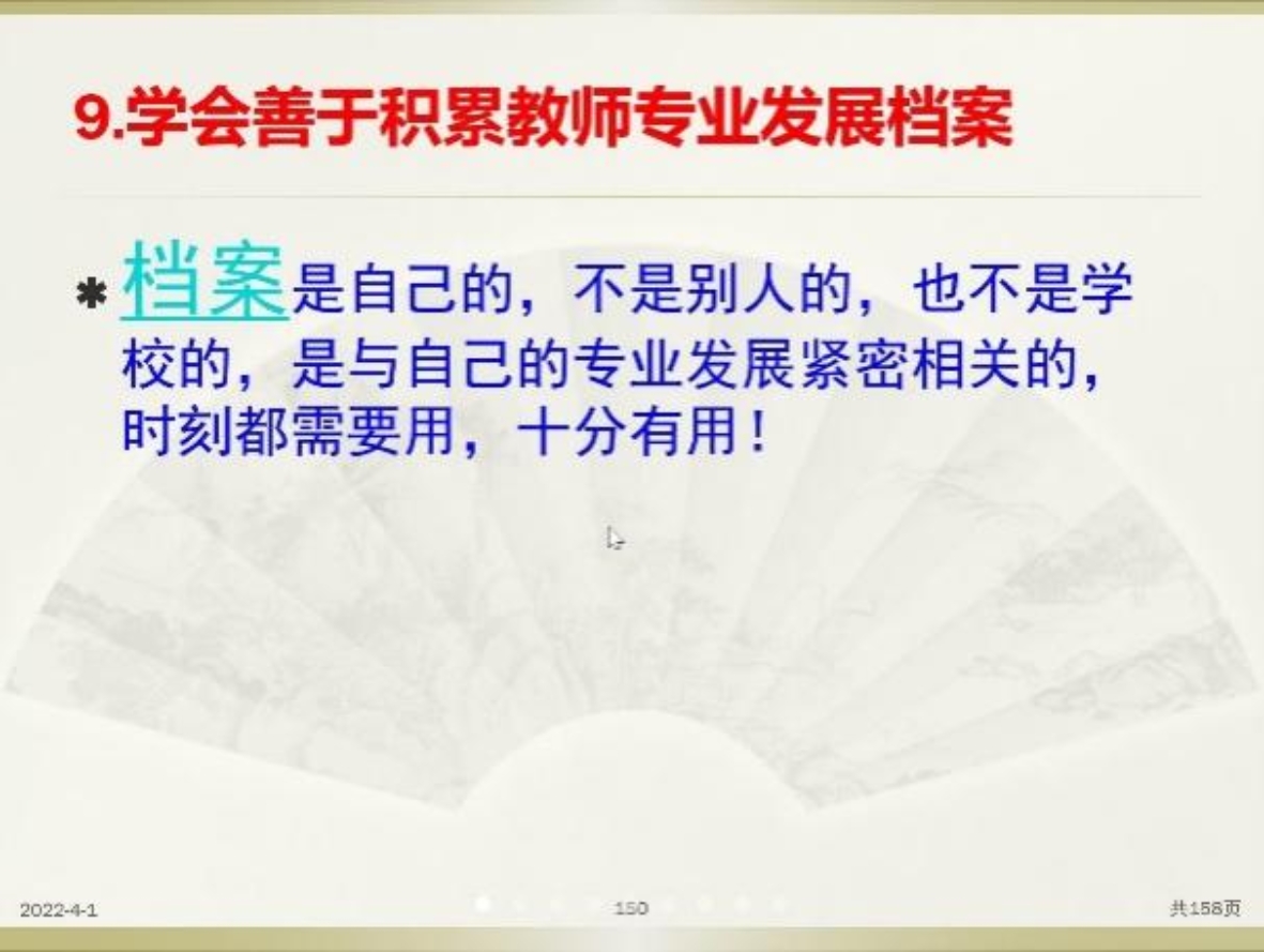 最后,钟进均老师分析了基于新课程教学实践的教师专业发展策略。他表示,教师在教学过程中进行反思是很重要的,它包括对教学技术的反思,对教学理念的反思,也可以是基于不同视角进行的反思。教师要具备专业发展意识,建立个人成长档案,记录发表的论文、获奖成果、课题研究、教学成绩等的情况。个人成长档案不仅可以记录个人的阶段性成长,也能促进教师更好地认识和完善自己,并且方便工作中的各种表格的填写。