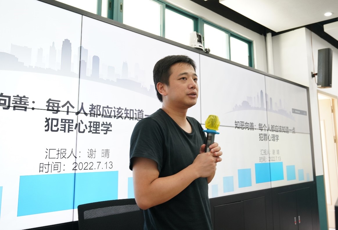 图3 谢晴博士生进行犯罪心理学主题报告