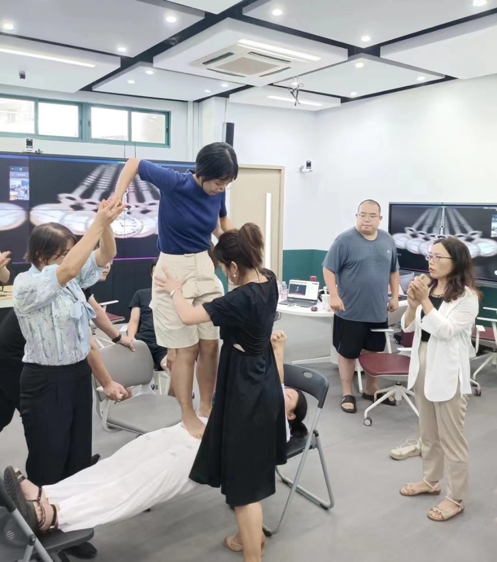 图7 四位博士生同学在张亮老师的指导下体验催眠