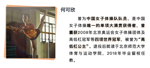 2013年9月全运会,何可欣与陪伴了她十六年的高低杠挥泪吻别,告别了自己的体操生涯。自2012年9月起,她就读于北京师范大学体育管理系,开始了一段新的旅程。去年,她开始了人生中的教育生涯,选择成为北京师范大学体育与运动学院一名普通老师。