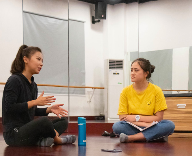 足尖微掂,手臂轻盈,举手投足间尽是优雅。细心地为每个学生指点动作,课间和同学们模仿嬉戏,说不尽的关心,开不尽的玩笑,以及镜子里显映出的淡淡微笑……这样一位细心,温柔,体贴的大姐姐,在教学方面却毫不马虎,几乎对每一个学生都是亲力亲为。
