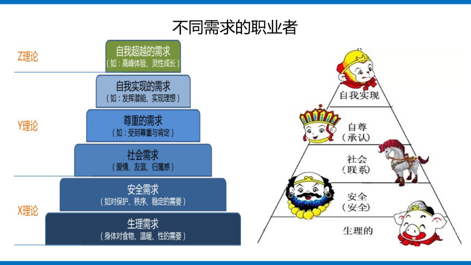 “面对当下社会的快速发展,作为准老师的大家,我们未来的学习应该关注什么”,在提出该问题之后,陈龙老师对“生涯”以古文字和彩虹图的形式进行讲解,说明“均衡是生涯规划的基本原则”。他认为职业选择的三种因素分别是发展、安全、声望。接着,他引用马斯洛需求理论,以《西游记》人物为例,生动有趣地分析了需求不同的人在工作中的各种心态。