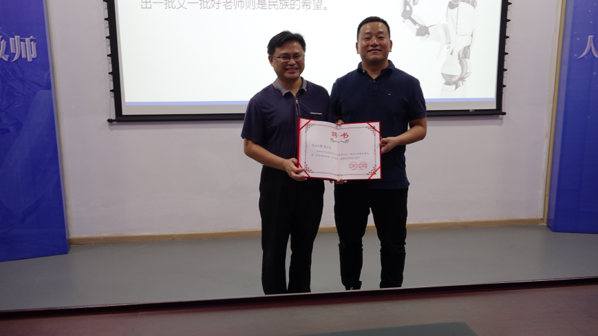 在全场热烈的掌声中,胡嘉骢老师为陈龙老师颁发了京师励耘讲坛主讲嘉宾证书。