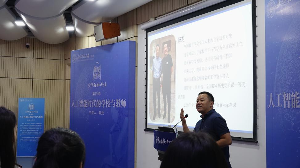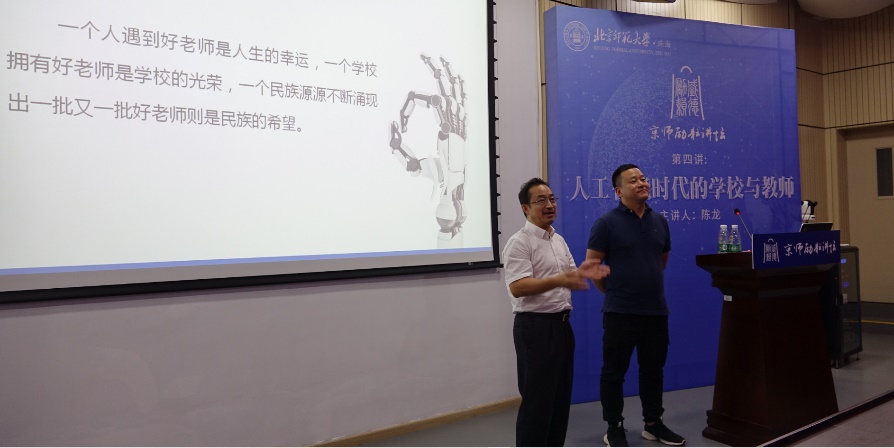 9月23日晚7点,京师励耘讲坛——名师名校长系列讲座在木铎楼A215拉开帷幕,贵阳乐湾国际实验学校陈龙副校长应邀以“人工智能时代的教育与教师:基于生涯规划的视角”为题,为同学们带来了一场异彩纷呈的讲座。名师名校长系列讲座是学院为了培养学生的教育情怀、了解当今国内外教育发展动态、开拓学生视野而精心打造的系列学术活动。讲座由未来教育学院孙波老师主持,胡嘉骢老师,李屿灼老师等,与130多位来自数学、历史学、汉语言文学和英语专业的公费师范生参加了活动。
