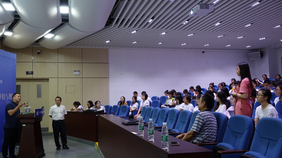 在互动环节中,来自不同专业的同学们就自己所思考的问题积极提问。例如作为教师如何不被各种生活的琐事困扰,如何看待自己现在所学的课程内容与未来实际教学内容的差别,如何看待当前一些急功近利的家长,人工智能的硬件设施可能存在的地区差异等问题。针对这些提问,陈龙老师结合自身理论知识和经验,为大家进行了耐心的解答。老师们也饶有兴趣地参与到互动环节中,主持人孙波老师提出了一个与学生们密切相关的问题,陈老师作为一校之长,是如何从毕业生中选拔教师的?陈龙校长坦诚地分享了他的经验,学校非常看重新老师的语言表达、课堂板书等教学基本功,同时学生在学科素养和思维品质等方面的表现也是学校选拔的重要依据,并鼓励大家要为成为一名优秀教师书写好奋进之笔。