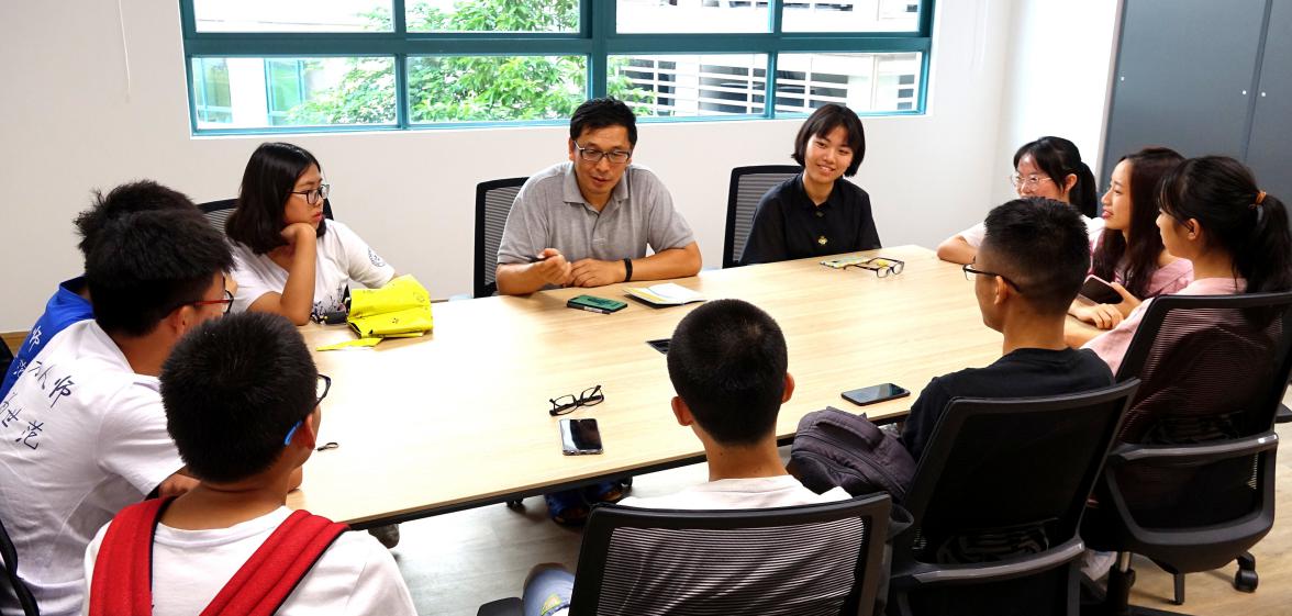 朱小健老师与同学们在会议室座谈