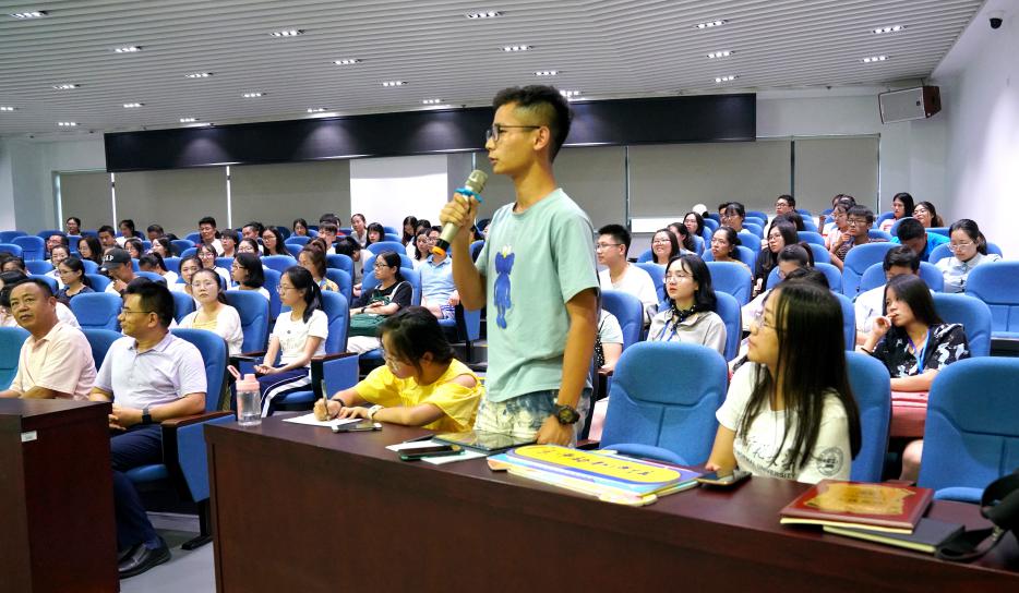 在提问环节,有同学问郭其俊老师选择教师职业的初衷,他回答说“教师对于一个国家的意义重大,这是一种责任,一份荣誉,这是我今天站在这里的原因。”