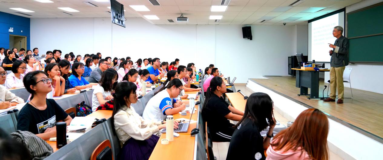 “‘学为人师,行为世范’是北师大的校训,在翻译校名的时候,我们把‘师范’翻译为‘normal’,也是想要体现出榜样、典范的含义。”朱小健老师鼓励大家要反复学习和理解校训,就像孔子对自己说过的话,也需要身体力行的去实践。“师范二字与教育有关,也与文化传承有关。”“一个人活在世上,主要从三个地方学习做人、做事的道理。第一个是家庭,第二个是社区,第三个是学校。”