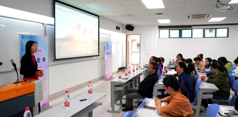 11月29日上午8点,京师励耘讲坛名师名校长系列第七讲在励教楼C204开讲。北京市语文学科带头人,北京师范大学燕化附中语文教研组组长金英华老师为大家带来了一场精彩讲座——“一路走来”。她用风趣的语言和生动的照片,和听众分享了自己28年一线教学的成长经历,令大家受益匪浅。讲座由未来教育学院副院长孙波老师主持,未来教育学院本科生和慕名而来的珠海市第十中学的老师们聆听了演讲。