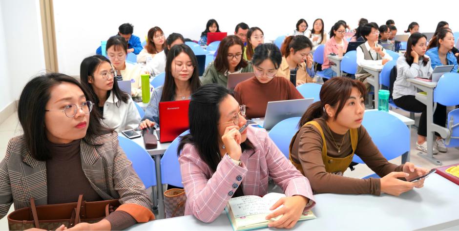 金英华老师深入浅出地阐述了专业发展过程中每位老师要把握的关键:基础、机遇、平台、提炼、创新,不仅个人要投入精力,还要依靠团队的力量。