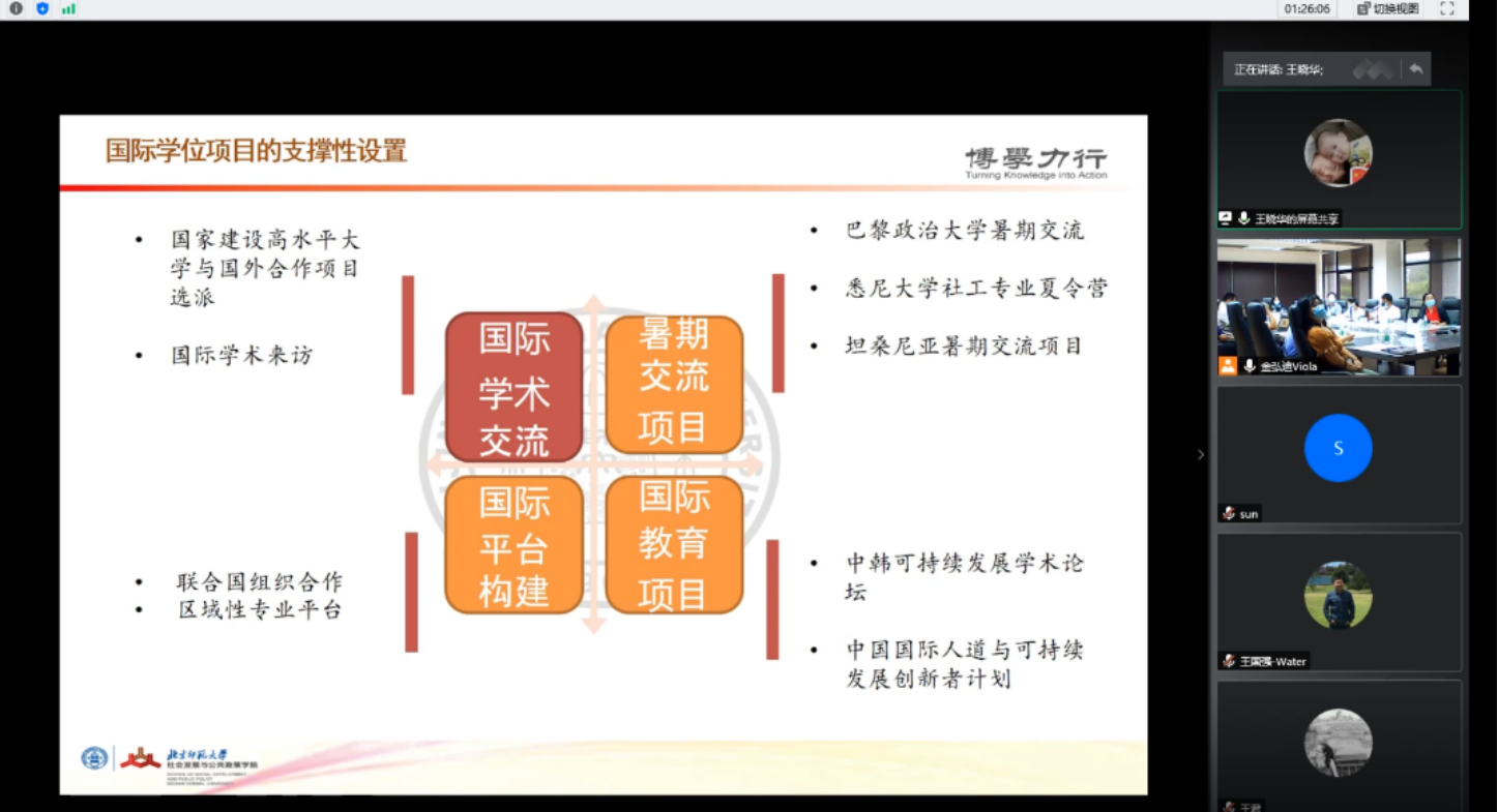 2020年7月9日,北京师范大学教育教学大讨论“一体两翼”国际化多校区调研小组研讨会顺利举行,研讨会围绕北京校区和珠海校区人才培养在国际合作和交流中碰到的困难和问题,探索“一体两翼”发展框架下的教学管理机制、教学资源共享、师资队伍建设、国际合作与交流等方面的建设思路,珠海校区国交会场、北京校区部院系国际化建设主管院长及秘书代表以及线上参会的“一体两翼”国际化多校区调研小组成员60余人参加了研讨会。会议由北京师范大学校长助理、常务副教务长郑国民主持。