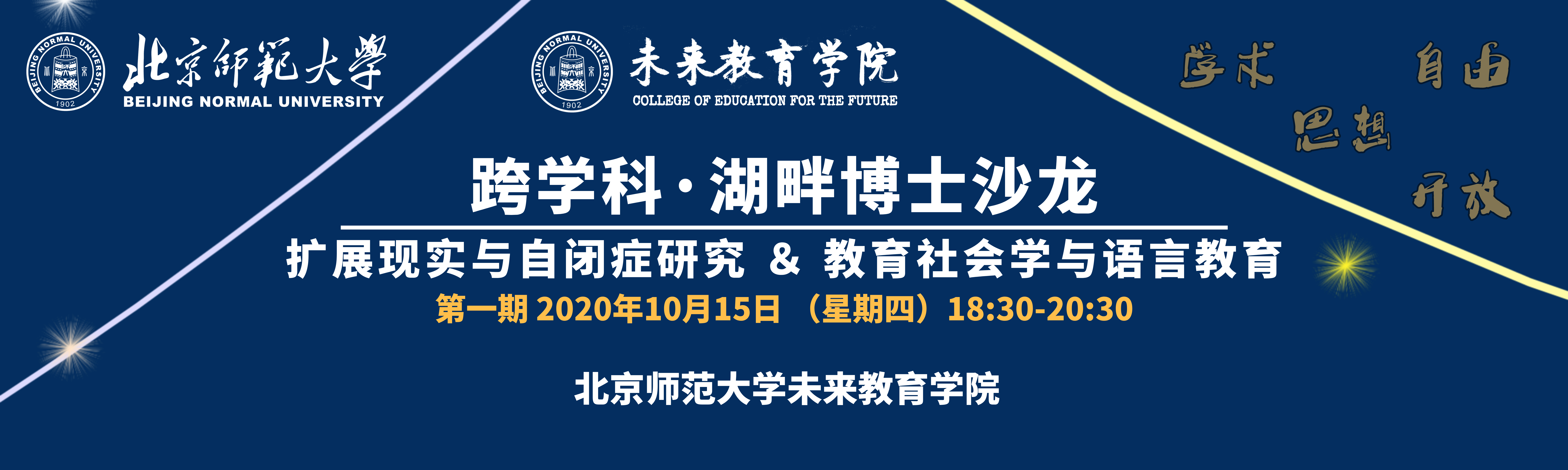 10月29日晚,北京师范大学未来教育学院跨学科·湖畔博士沙龙第三期在励教楼A101外湖畔平台顺利举行。本次沙龙活动围绕内隐观及其在职业生涯领域研究中的应用这一主题展开交流,探讨内隐观相关研究的未来发展方向。活动由化学专业的杨逸博士主持,心理...