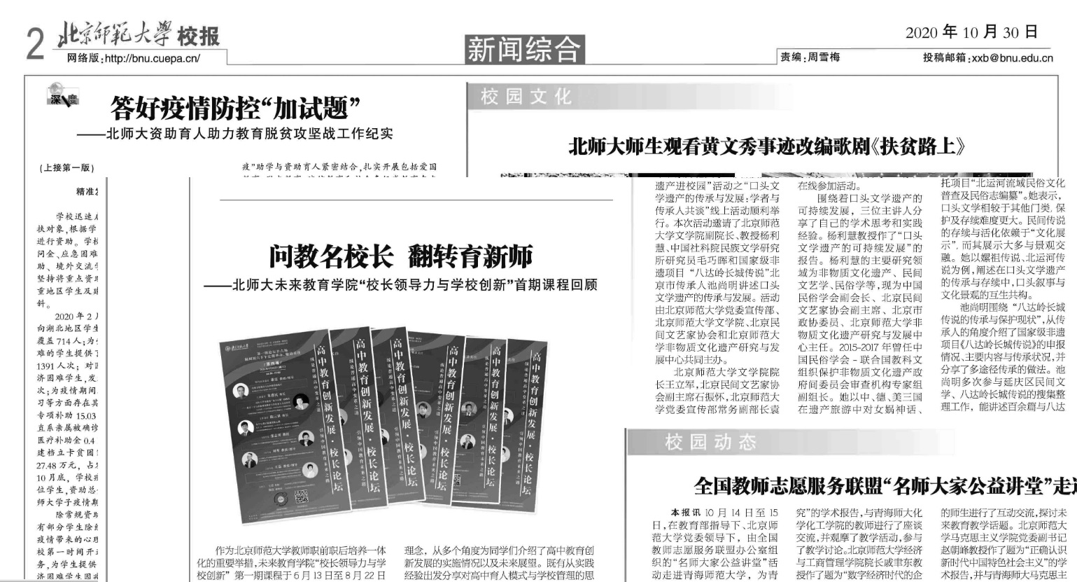 北京师范大学校报第464期02版刊文:问教名校长 翻转育新师——北师大未来教育学...