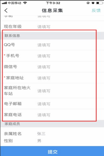 二. 联系信息的所有字段如实填写即可,QQ号、微信号、手机号等重要联系方式请勿必填写正确。