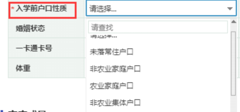 6. 入学前户口性质:一般城市户口填写非农业家庭户口、农村户口填写农业家庭户口,其他暂住户口、寄住户口等单独选择