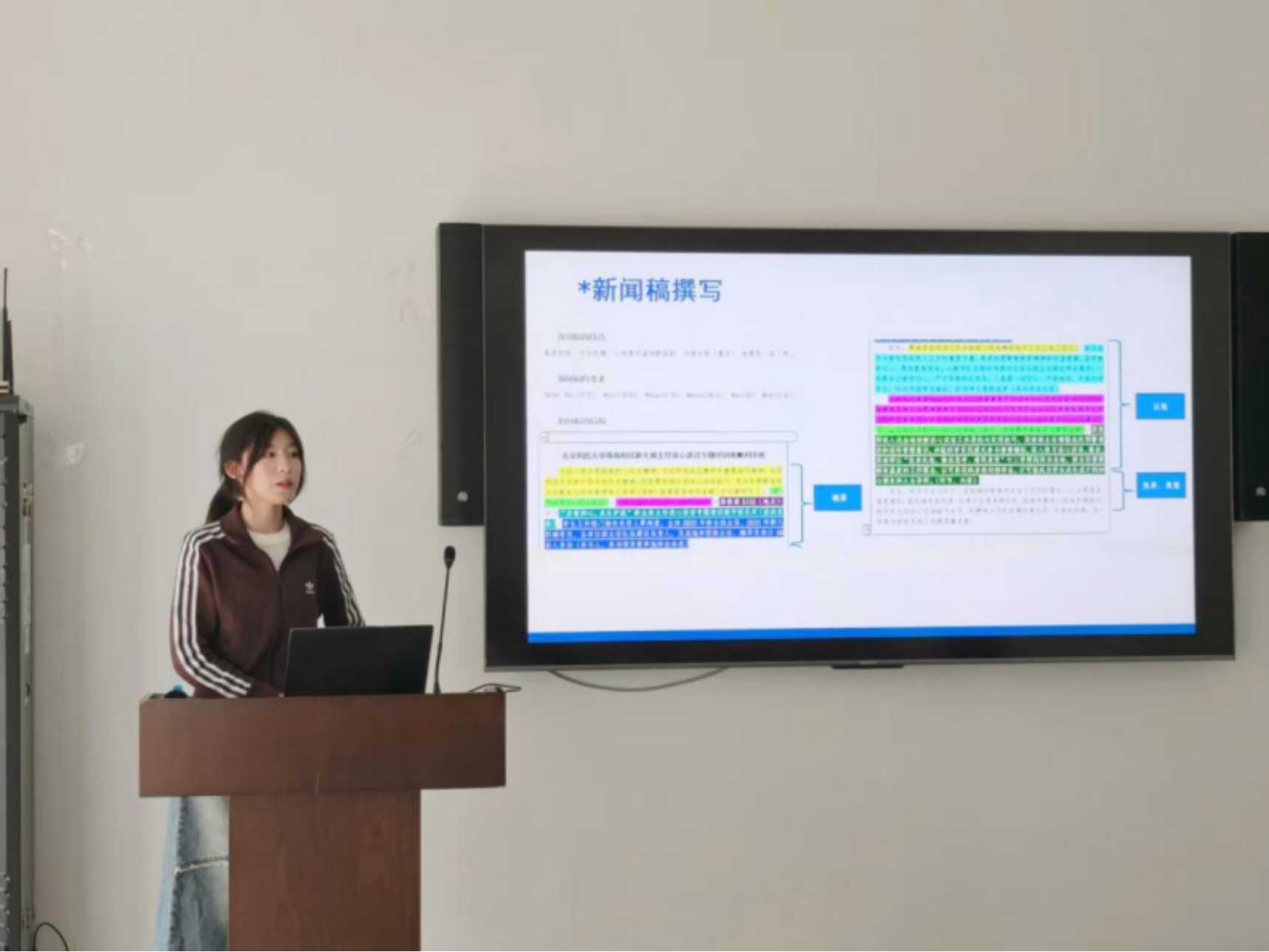 本次培训会特别邀请了北师学工运营采编部部长尹恩盼同学担任主讲人,融媒体中心成员们积极参与本次培训,现场学习氛围浓厚。