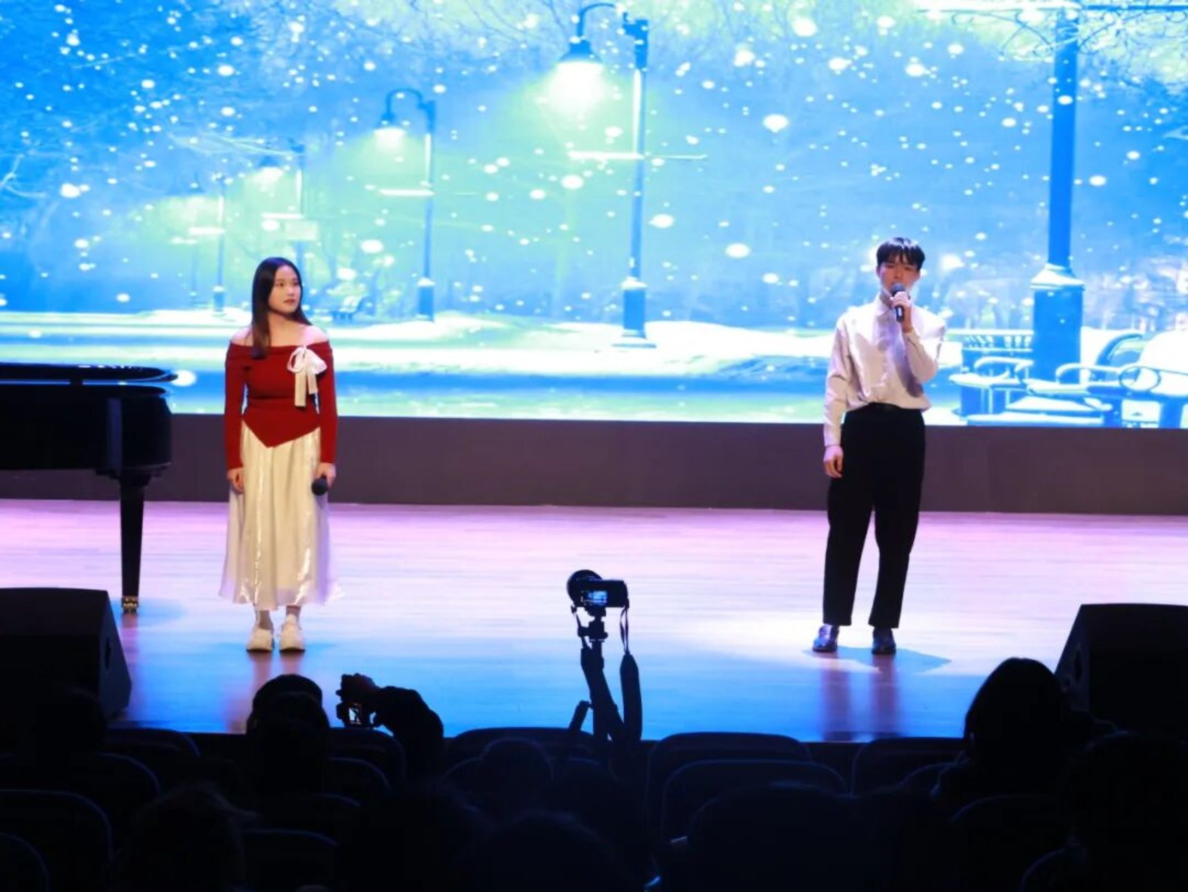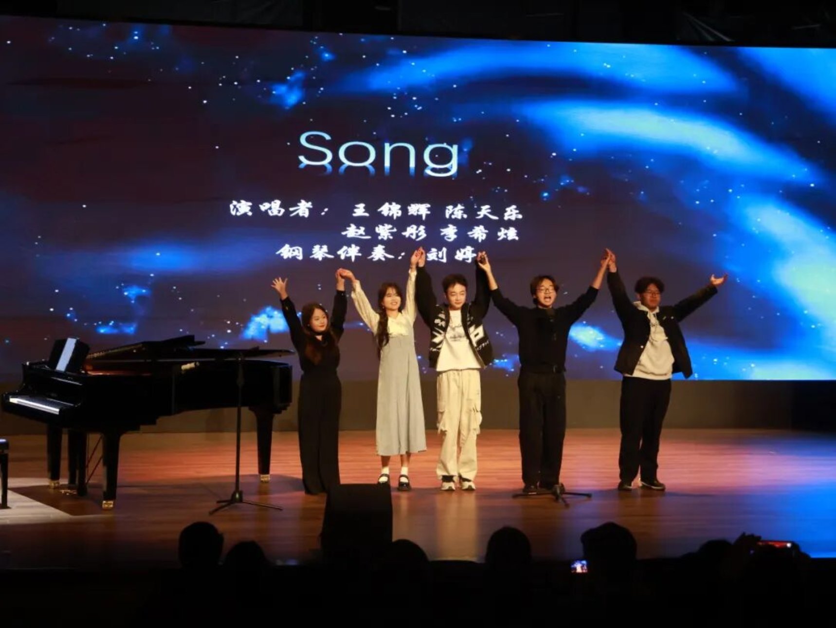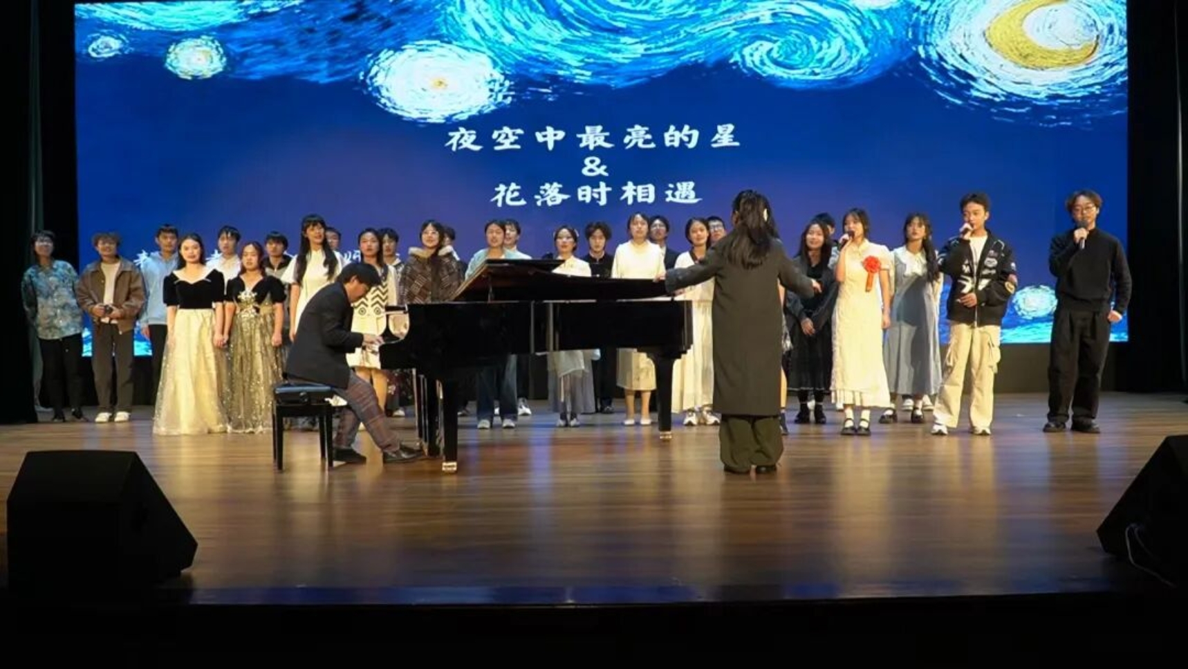 音乐会的亮点在于学生们亲自从舞台管理、艺术串场、草拟台词、摄像、录像等方面,进行综合艺术实践。其次,曲目从古典到流行,伴奏从录制伴奏到现场即兴演奏,多维方式展现。丰富的乐器种类,不同的语言,不同的音乐表现形式,为音乐会带来了多元的表现色彩。音乐会现场观众有极高的参与度,在共同热爱的音乐舞台上,共同造就了这场高质量音乐会!下面我们一起回顾一下表演的精彩瞬间!