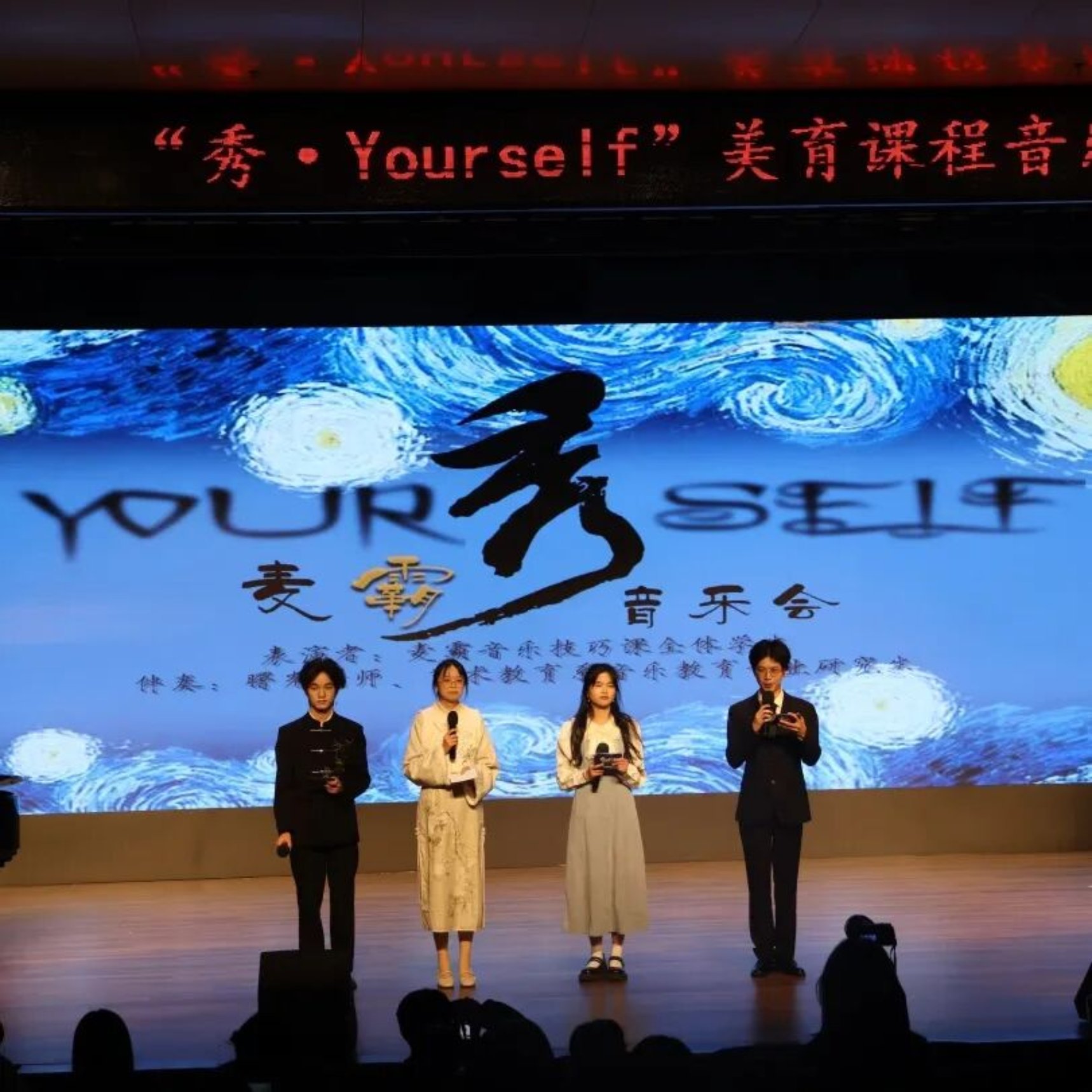 音乐会在系主任蒯卫华老师的策划下,由曙光老师担任艺术指导,24-25秋季学期全校通识美育课程“麦霸音乐技巧”的学生、24级音乐教育专业研究生及多位音乐爱好者共同呈现。