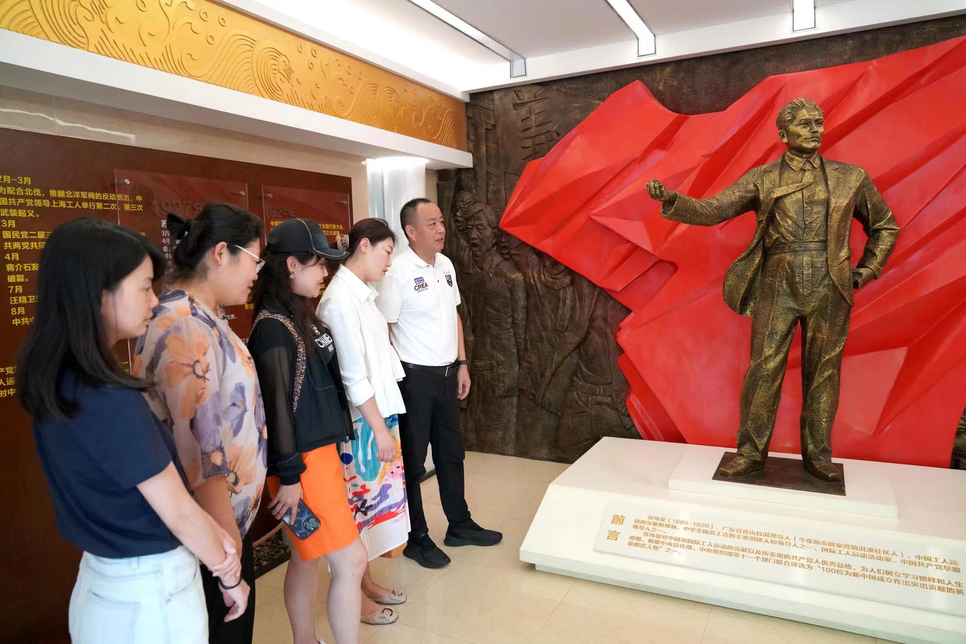 在苏兆征故居陈列馆内,未来教育学院教师一行在讲解员的带领下,了解了苏兆征艰苦奋斗的光荣事迹,从一幅幅历史照片、一件件珍贵的实物、一段段感人的故事中,深入了解革命烈士苏兆征生平事迹。党员们感慨万千,几十年前那个救国求存和不屈抗争的时代似乎浮现在眼前,深深被苏兆征烈士奋勇争先、不怕牺牲、敢于拼搏的精神所鼓舞。