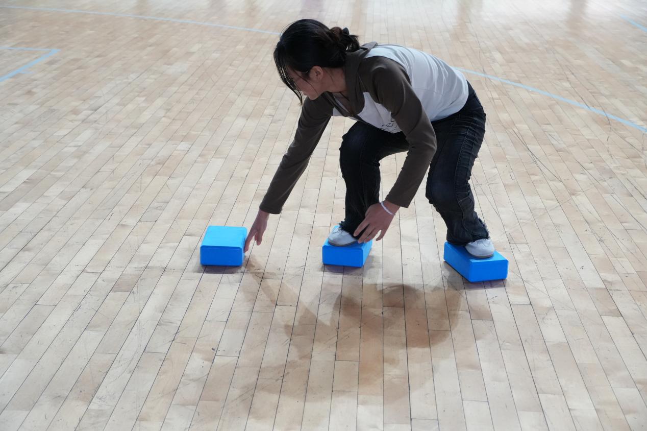 趣味项目区成为全场笑声与欢呼最为集中的区域。沙包投准、摸石头过河、飞盘九宫格射门和排球搬运工等项目同步展开,既考验个人技巧,更强调团队之间的默契与协作。参赛队员们全情投入、配合默契,在轻松愉快的氛围中展现出智慧与敏捷。场边观众也不断加油助威,欢呼声、笑语声此起彼伏,构成一幅生动而温暖的校园体育画卷。